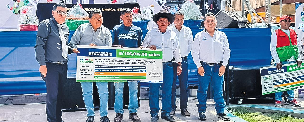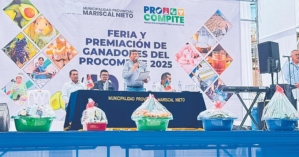 La Municipalidad Provincial deMariscalNietorealizóelúltimo viernes la ceremonia de premiación a los 26 ganadoresdelfondoconcursableProcompite 2025,de 57 organizaciones que se presentaron,un programa que este año destinó 10 millones de soles para fortalecer iniciativas productivas en la provincia. La activi-
