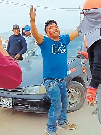 Tras el impacto,el conductor del mototaxi, quien presentaba sangrado en la cabeza,mostró una actitud prepotente y tuvo que ser reducido por un grupo de trabajadores que intentaba auxiliar a una mujer atrapada en el vehículo menor.