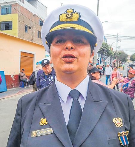LacapitándepuertoÁngela Núñez del Prado tuvo a su cargo la lectura de la proclama del comandante general delaMarinadeGuerradelPerú, destacando el legado de Miguel Grau como símbolo