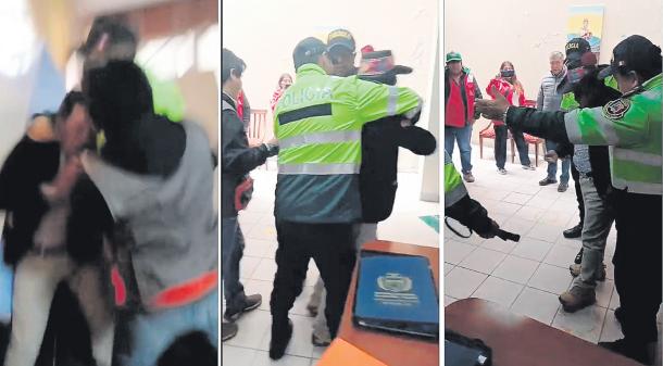 En una constatación policial con una servidora que reclama su reposición en la Municipalidad Distrital de San Cristóbal,el alcalde Claudio Vizcarra Maquera,con cariño"Gallo",seopusoalaintervenciónyhastaseenfrentóala policía. Cual plumífero "ají seco" de cuatro libras, la autoridad municipalsecreíadueñodelpalacioedilyofrecióresistenciaante un efectivo policial. Como el "Gallo metía cacho", tuvieron que intervenir más efectivos para finalmente reducirlo y ponerloabuenrecaudo.
