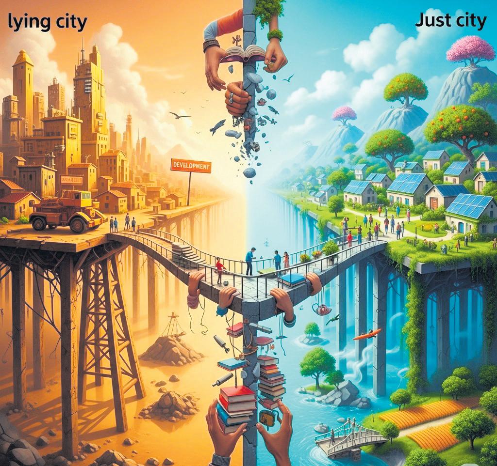 La narrativa del desarrollo y el crecimiento económico impulsado por la minería en el Perú se presenta como una "verdad a medias" o "historia incompleta", simbolizada por lametáforadela"ciudadmentirosa", una promesa de progreso que ha excluido a gran parte de la población. El gran desafío del país es superar esta contradicción mediante una redefinición del modelo dedesarrollo,dondelajusticia social y espacial sean condicionesindispensables(noobstáculos)paratransformarlariqueza mineral en bienestar duradero y compartido. La construcción de ciudades justasyequitativaseselúnicocamino para desmantelar el espejismo de la "ciudad mentirosa" y edificar un futuro donde el crecimiento económico seasinónimodedesarrollohumanoreal.