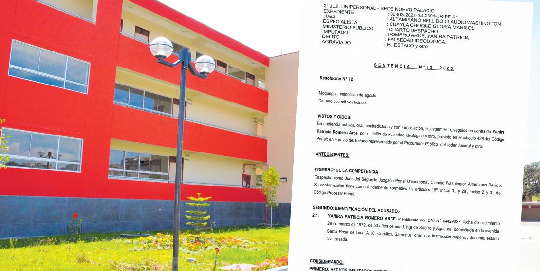 Una denuncia penal que fue presentada el 20 de diciembre de 2019 ante el Ministerio Público, recién con fecha 28 de agosto de 2025 estaría viendo aparecerlajusticia.EljuezClaudio Washington Altamirano Bellido, del Segundo Juzgado Penal Unipersonal de la Corte SuperiordeJusticiadeMoquegua, emitió sentencia de primera instancia contra Yanira Patricia RomeroArce,quienfuecondenadaaseisañosdepenaprivativadelalibertadefectiva.