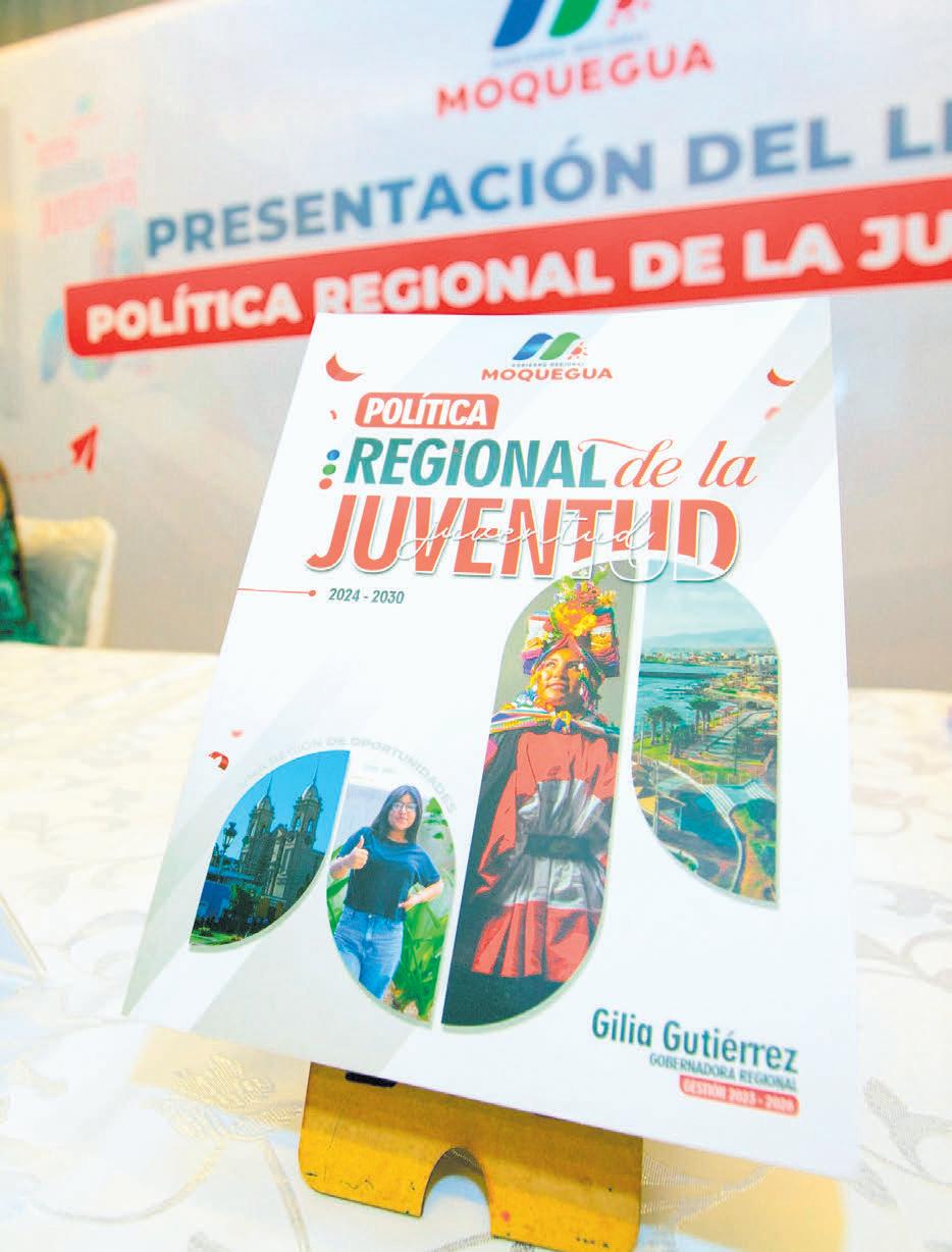 La gobernadora regional de Moquegua, Gilia Gutiérrez Ayala, presentó el primer libro de la Política Regional de la Juventud, un documento clave para la planificación y ejecución de iniciativas en favor de los jóvenes moqueguanos. Esta propuesta,única a nivel nacional,ha sido diseñada en concordancia con las políticas públicas y adaptada a la realidad local, conelobjetivodegenerarunimpactopositivoyduraderoenla juventud.