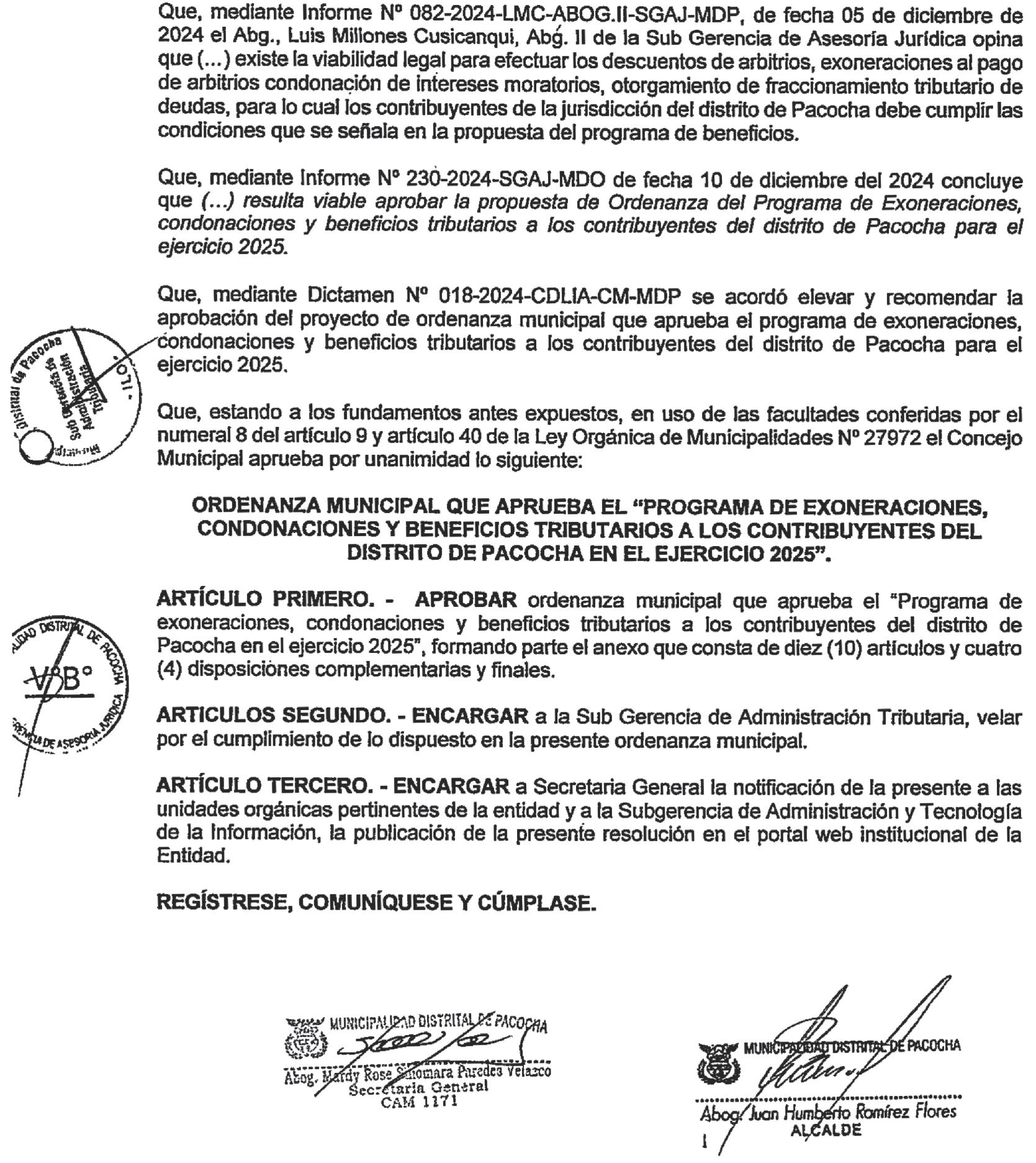 ASAMBLEA GENERAL ORDINARIA DE ASOCIADOS A LA AFOCAT MOQUEGUA DE CONFORMIDAD A LO DISPUESTO EN EL ARTÍCULO 31°, LITERAL A) DEL ARTÍCULO 35° Y LITERAL H) ARTÍCULO 54° DEL ESTATUTO DE LA AFOCAT MOQUEGUA, SE CONVOCA A SUS ASOCIADOS, A LA ASAMBLEA GENERAL ORDINARIA, QUE SE REALIZARÁ EL DÍA SÁBADO 15 DE MARZO DEL 2025, EN SU LOCAL INSTITUCIONAL UBICADO EN: ASOCIACIÓN PACOCHA MZ A, LOTE 2D1 DE LA CIUDAD DE ILO. PRIMERA CITACIÓN: A HORAS 09.30 A.M. Y SEGUNDA CITACIÓN:AHORAS10.00A.M.AGENDA: 1.- RECTIFICACIÓN DEL ACUERDO 1 DEL ACTA DE ASAMBLEA GENERAL ORDINARIA DE ASOCIADOS DE LA AFOCAT MOQUEGUA, DE FECHA 14 DE ENERO DEL 2025, PARA LA ADMINISTRACIÓN DIRECTA DEL EXCEDENTE DEL FONDODELAAFOCATMOQUEGUA.