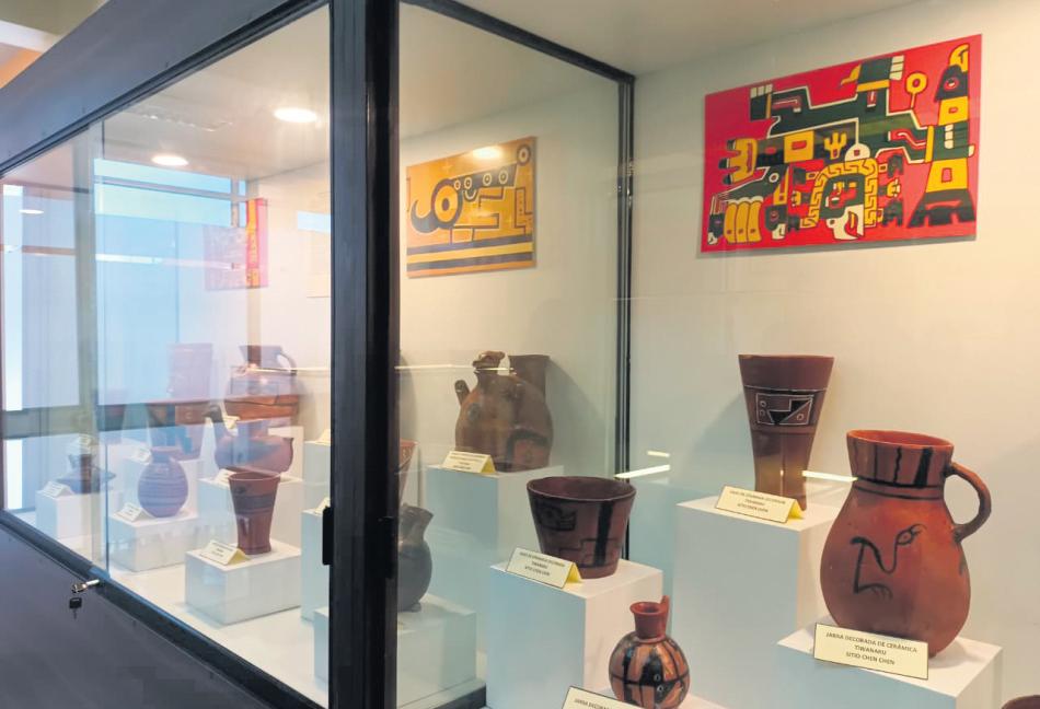 trumentosmusicalesyunfardo funerario que recrea hallazgosarqueológicosdelazona. Entre las piezas más destacadasseencuentraun“quero” en alto relieve del dios de losbáculosTiahuanaco,consideradoelejemplarmásrepresentativodeChenChen.