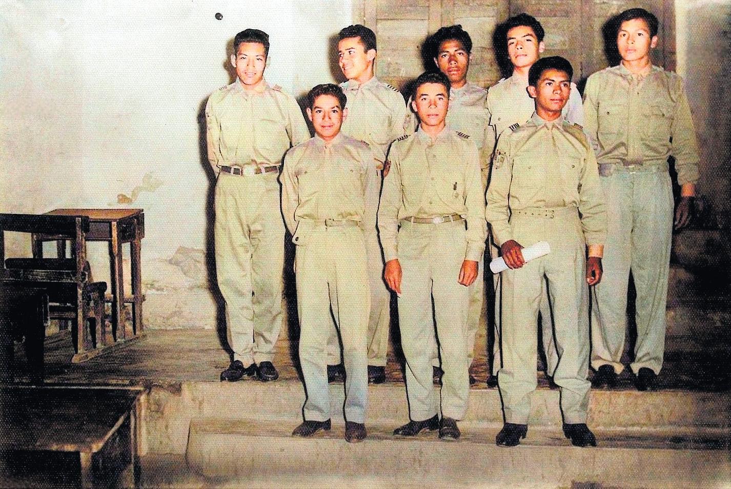 | Promoción 1957 del Colegio Nacional de la Libertad, reunida en el Salón deActos.De izquierda a derecha: Felipe CoaylaJ.,EduardoVegazo Miovich, Demetrio VargasVargas,JavierVargas G.,WashingtonAndía Rojas,Jaime Chipoco,EduardoTocunagaVásquezy Luis Garcés Barrios.|