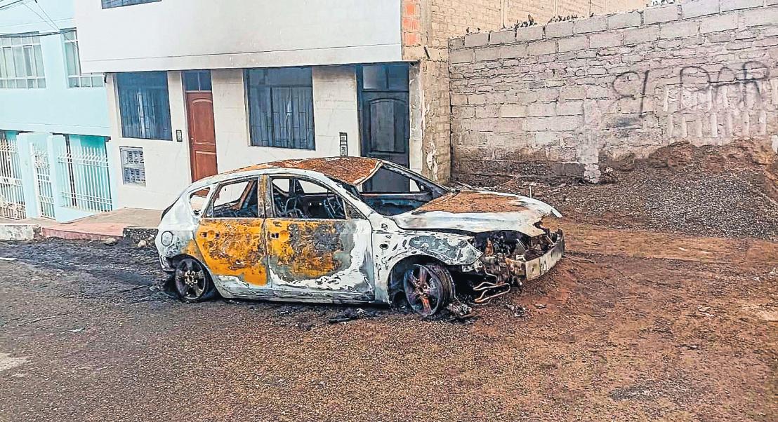 aproximadamente a las 04:00 h, cuando un vehículo se incendió frente a una vivienda de la Mz.M,muy cerca del colegio Jorge Basadre Grohmann.