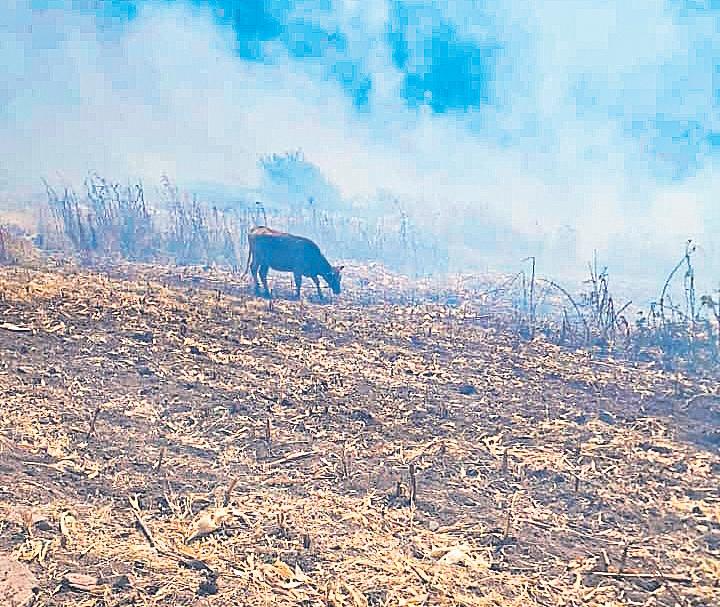 Unavacayunternerocalcinados,ademásdeladevastación del 50 % de los pastizales, fue el saldo que dejó un incendio