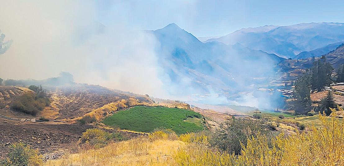 forestal de gran magnitud registrado la tarde del domingo en el anexo de Solajo, distrito de Carumas. El siniestro comenzó aproximadamente a la 1:00 p.m. y recién pudo ser controladoalas2:30p.m.,tras