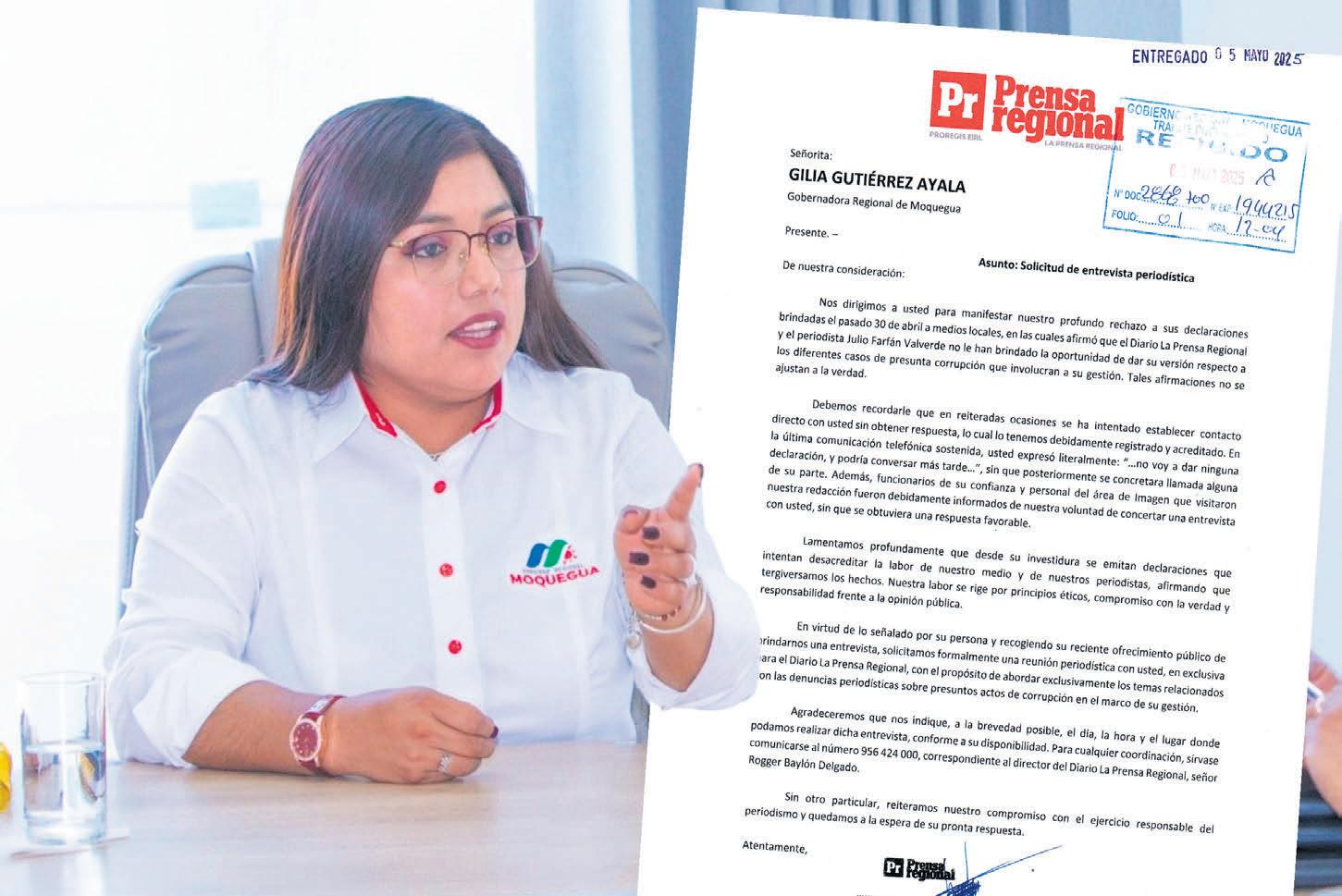 | Gilia GutiérrezAyala,gobernadora regional de Moquegua, ha hecho afirmaciones falsas sobre este medio.Si desea transparencia y no escudarse en excusas,deberá responder