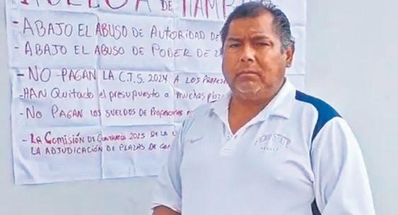 profesor de Educación Física, Roberto Vera Dianderas, quien inició una huelga de hambretrasnorecibirsusueldo por dos meses ni el pago de su Compensación por TiempodeServicios(CTS).