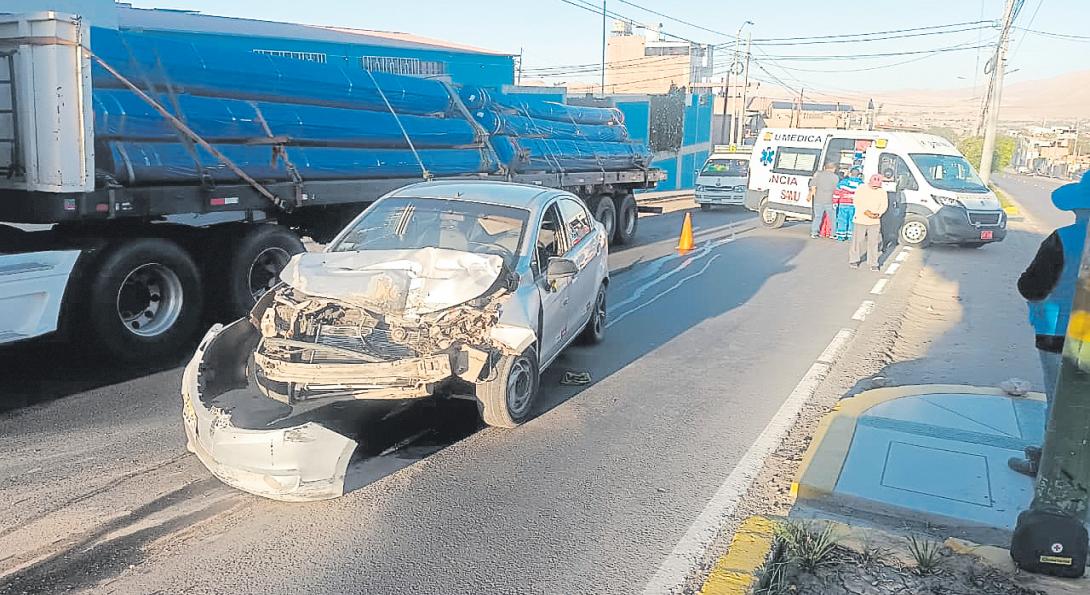 Alpromediarlas6:35delamañana de este martes,se registró un accidente de tránsito en la avenida Andrés Avelino Cáceres, frente a la sede de la Junta de Usuarios de Moquegua y a pocos metros del pe-