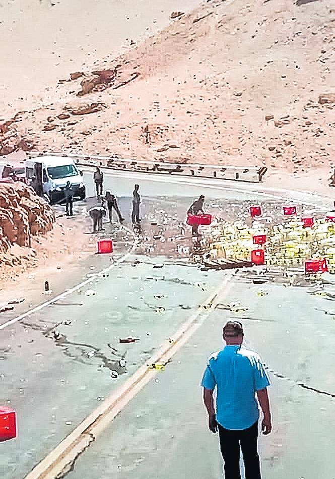 El impacto provocó la dispersión de numerosas cajas de bebidas en la vía. Mientras algunas botellas resultaron dañadas, otras fueron recogidas por transeúntes que,lejos de colaborar con la recuperación de la carga, optaron por llevarse los productos. Imáge-