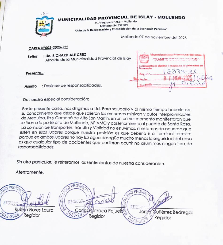 recurrirá al Poder Judicial para que sea un juez quien disponga el retorno de los agentes policiales, con el objetivo de garantizar la seguridad en las provinciasdeIlo,MariscalNietoySánchezCerro. “Eseeselobjetivoqueestamospersiguiendo.Vamosaestar a la espera de la respuesta del comandante general de la Policía Nacional,la cual daré a conoceralosmediosdecomu-