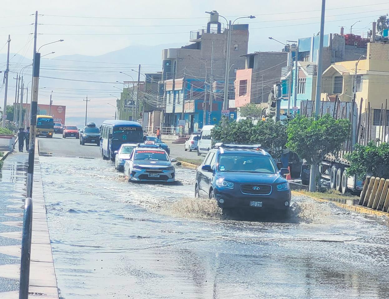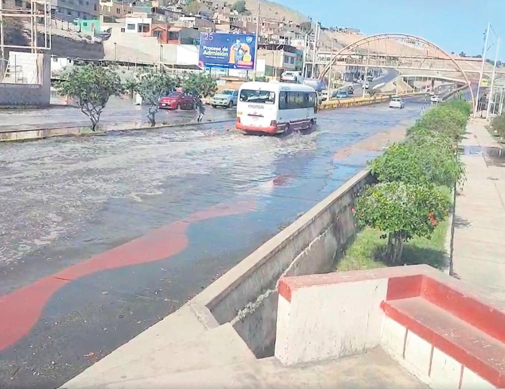 Un nuevo aniego se registró en la avenida Andrés A. Cáceres, entre los sectores de Alto Ilo y César Vallejo, cerca del bypass,esta vez por el colapso debuzonesdedesagüe,generando gran malestar entre los vecinosdebidoalosmalosolo-