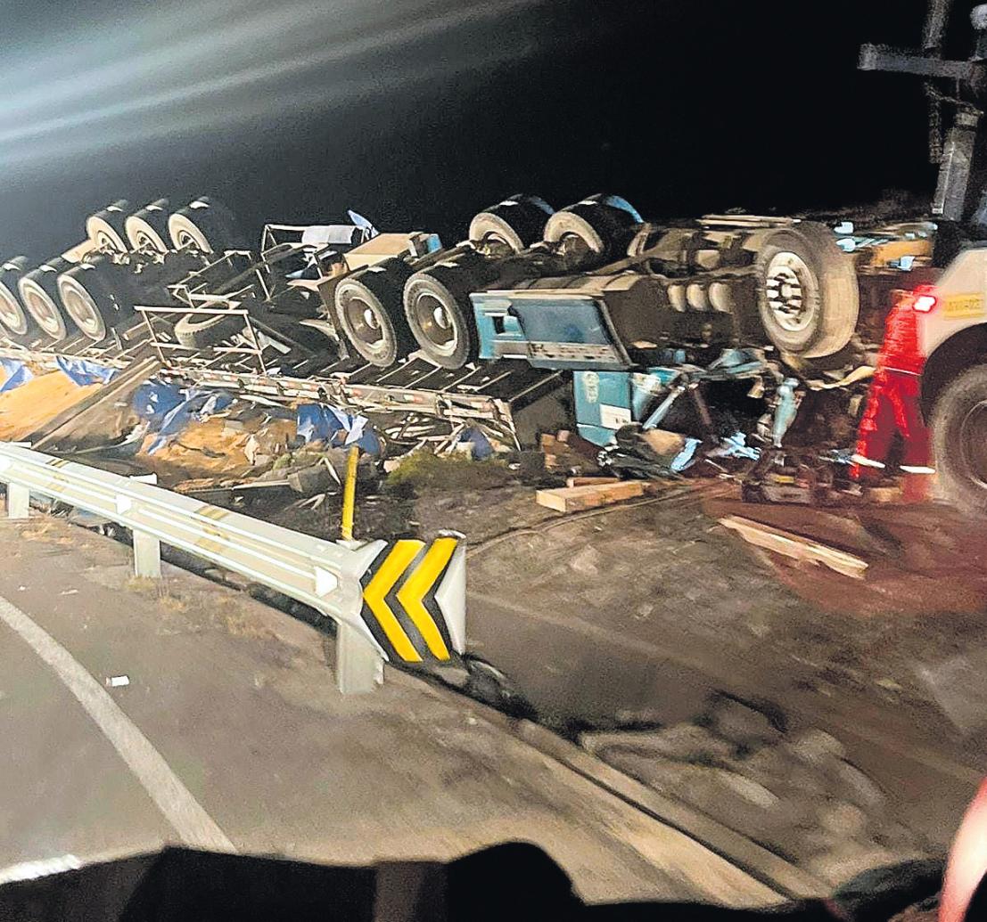 Un camión de nacionalidad boliviana, que transportaba soya, sufrió un accidente de tránsito tipo despiste y volcadura en la carretera Binacional, a la altura del kilómetro 83,enjurisdiccióndeTorata.