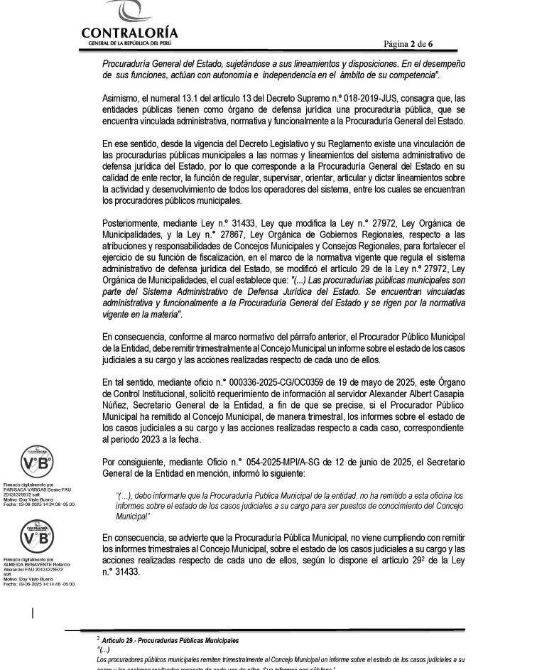 “Nuestra labor fue presentar el informe y remitirlo a las autoridades competentes. Ahora,elMinisterioPúblicoestá a cargo del desarrollo del proceso. Como Consejo, hemos venido haciendo seguimiento desde cada gestión del consejero delegado”,agregó.
