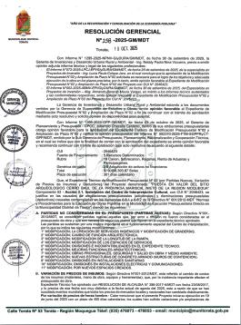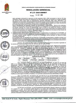 El documento, firmado por el gerente municipal Boris AlejandroAyma,precisaquelaresponsabilidadtécnicaylegalante posibles omisiones o deficienciasrecaeenelresidentede obra,HernánOrocolloCauna,el inspector de obra, Asencio Ramos,ylosprofesionalesqueelaboraronelexpedientetécnico.