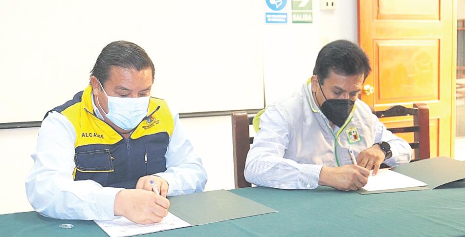 El alcalde provincial de Mariscal Nieto, Abraham Cárdenas Romero junto a su homólogo deldistritodeSamegua,Alonso Aragón Calcín firmaron un ConveniodeCooperaciónInterinstitucional, con el objetivo de unir esfuerzos para el saneamiento físico legal, en be-