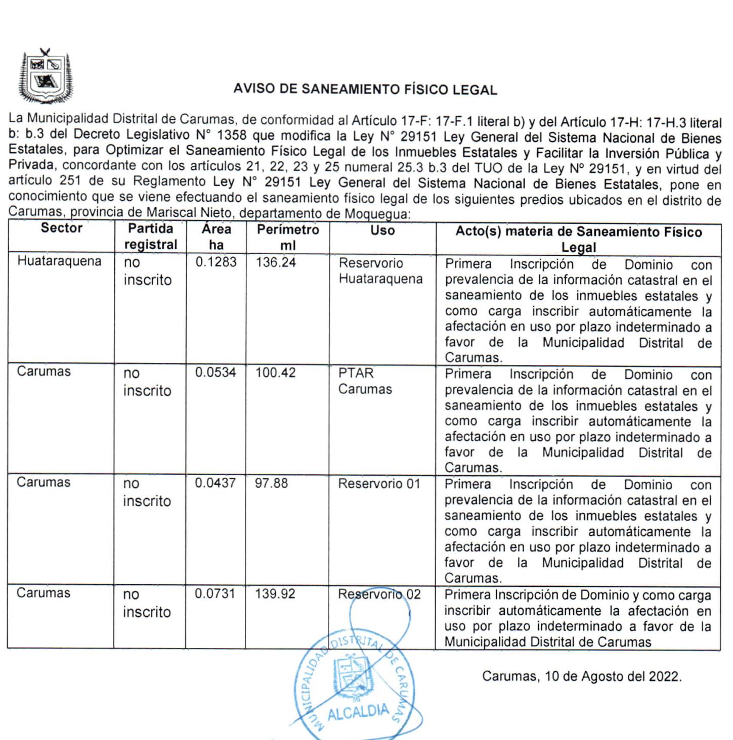 soría del Pueblo, MunicipalidadProvincialdeMariscalNieto, que es un actor muy importante ya que impondrá las