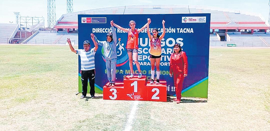 Las atletas del puerto de Ilo, Yutsi Velásquez Cabana en lanzamientodediscoyDoménica Crose en 80 c/v y Salto Largo del Team EIEFD, logra-