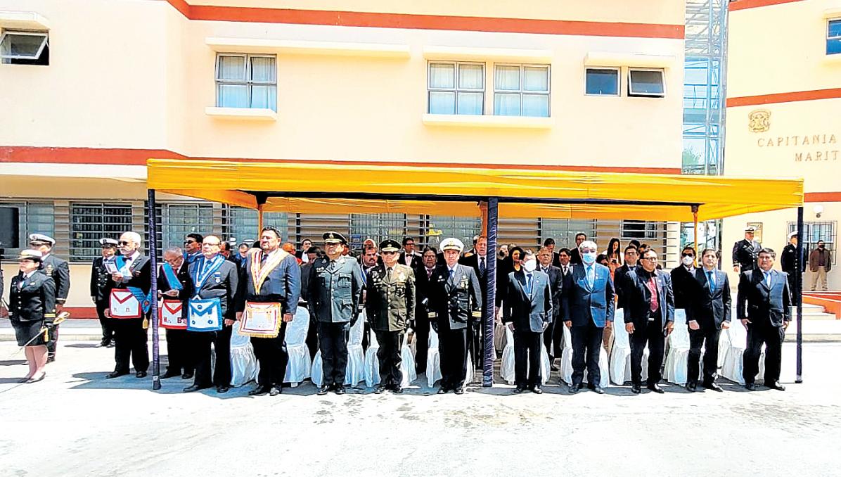 Laceremoniacentralfuepresididaporelcapitánde puertoSergioPáez,quienestuvoacargodela proclamadelcomandantegeneraldelaMarinade GuerradelPerú.