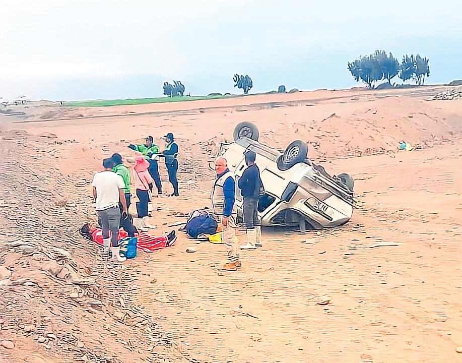 Se trata de la unidad vehicular de placa de rodaje F8I385 conducido por Edson Vergara Quispe (29) que al llegar alazonasesaliódelavíadando vueltas de campana quedandoconlosneumáticoshacia arriba; los ocupantes sobrevivierondemilagro.