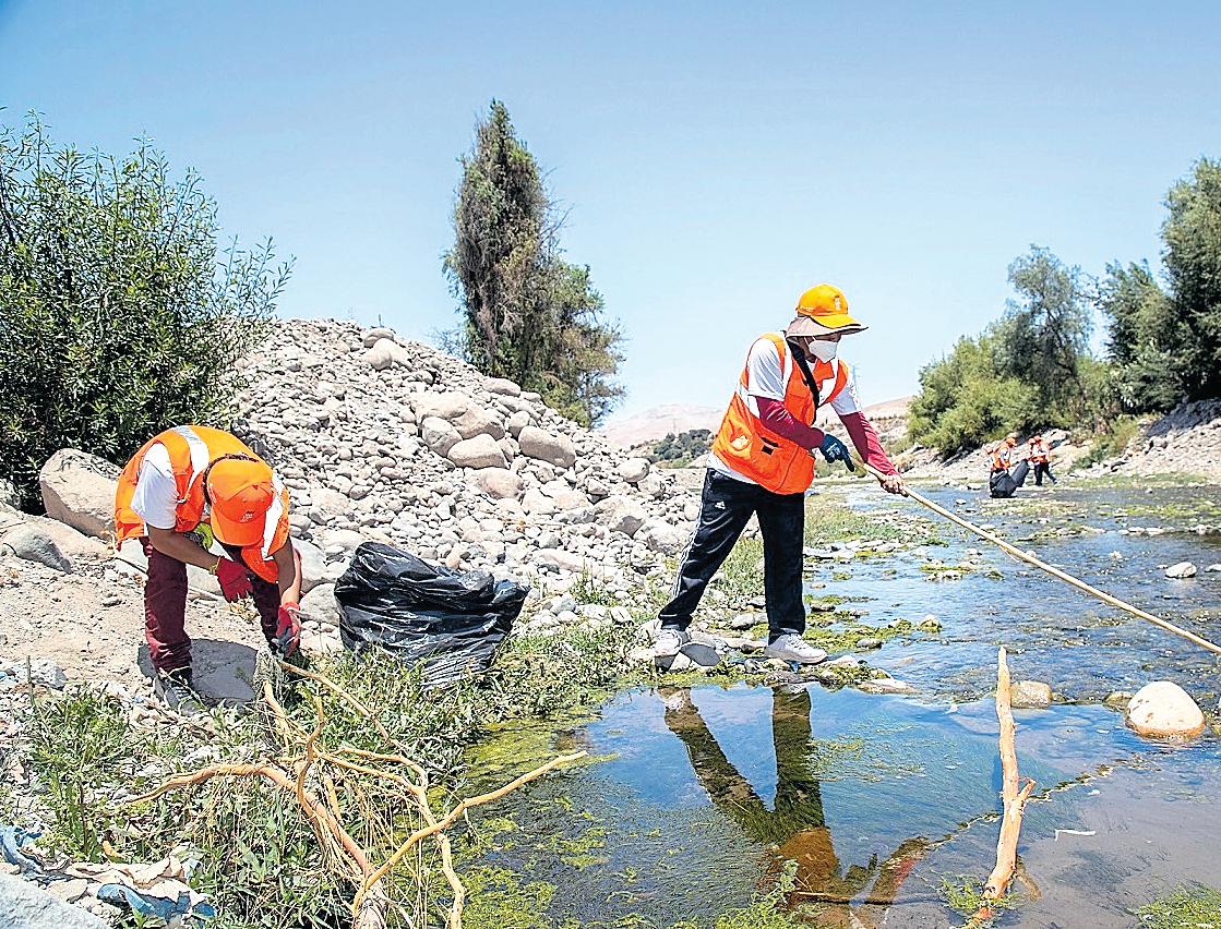 EnMoquegua,losvoluntarios trabajaron bajo un abrasador sol en el Malecón Ribereño,recogiendoresiduos,limpiandolariberadelríoymejo-