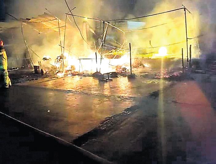 los puestos de venta,donde al parecer habrían regado gasolina y tratando de aparentar uncortocircuito.