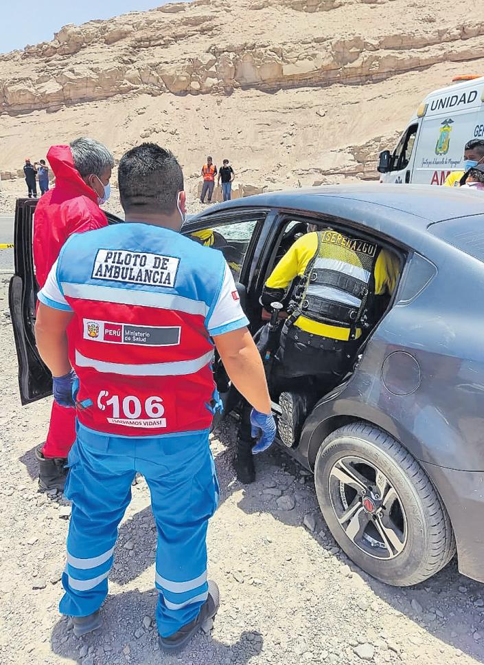 En la víspera, los servicios SAMUdeMoqueguaeIlo,junto a efectivos de la Compañía de Bomberos y la SUTRAN, asistieronunaccidentealaaltura del cruce de la carretera PanamericanaSurconIlo,donde resultaron policontusos 3 personas entre 45 y 50 años de edad, 2 varones y 1 dama, los cuales fueron estabilizados y referidos al Hospital RegionaldeMoquegua.