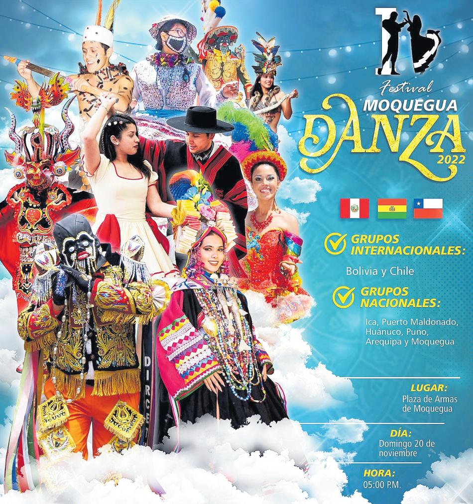 Como parte del programa de festividades por el 481º aniversario de la ciudad de Moquegua,la Municipalidad Provincial Mariscal Nieto a través del proyecto: “Mejoramiento de la Prestación de Servicios de la Subgerencia de Desarrollo Social”, realizará el “I Festival Moquegua Danza 2022”, con la participación de delegaciones locales, nacionales e internaciones.