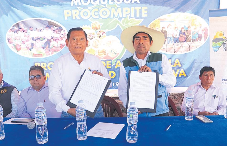 Cabe resaltar que en la ceremonia de entrega de bienes de Procompite participaron también el Coordinador RegionaldelProcompiteIng.Ziobany Perea Benique; el director regional de Energía y Minas, Robert Carazas Flores; el representante de los productoresbeneficiarios,MiguelJuárez Layme; y el presidente de la Junta de Usuarios del Distrito de Riego Moquegua, MiguelVizcarraSaraza.