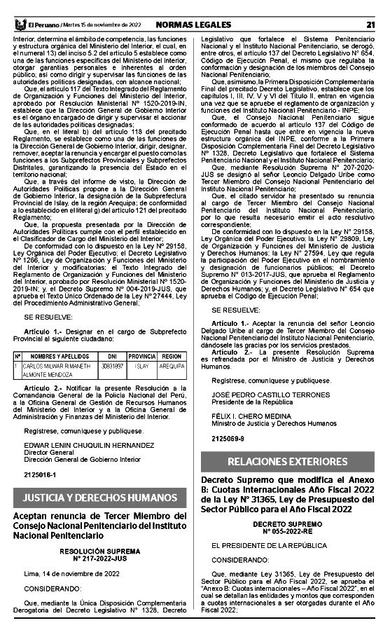 “Por disposición del señor presidente del Congreso de la República, cumplo con citar a ustedalasesiónpresencialde la Comisión Permanente que serealizaráelviernes18denoviembre de 2022, a las 12:00