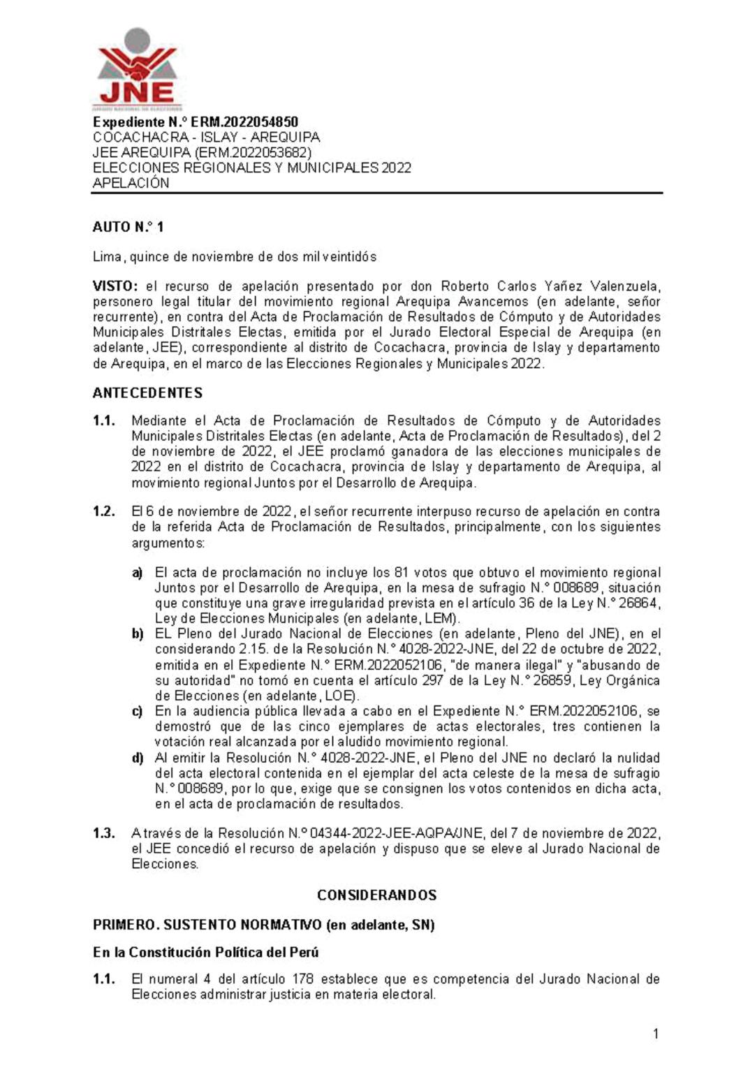 fecturaregionalacargodeYeremi Torres) sin embargo,volvió a su lugar de origen al haberse ratificado a Carlos Almonte Mendozacomosubprefecto de la provincia de Islay en otro documento emitido por la Dirección General deGobiernoInterior.