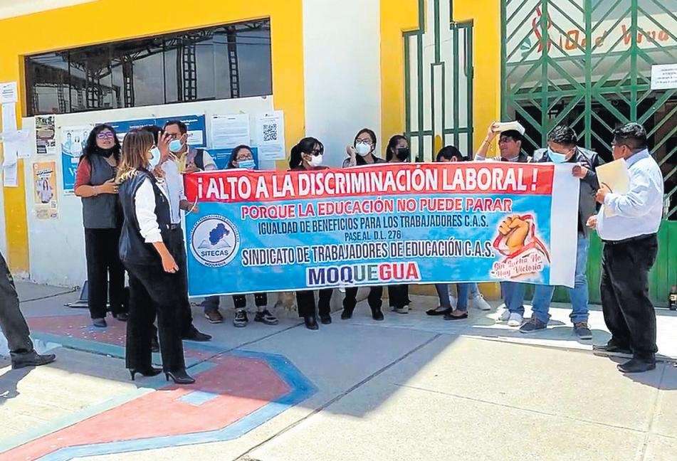 Trabajadores afiliados al SindicatodeTrabajadoresdeEducación CAS Moquegua (SITECASMoquegua)delaDirección Regional de EducaciónMoquegua(DREMO),realizaron un plantón como medida de protesta, exigiendo queatiendansusdemandas.