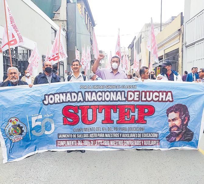 Elgobiernonacionalno cumple con los maestros del Perú, por eso la dirigencia del SUTEP, liderados por su secretario general Lucio Castro Chipana,anunció el inicio de una huelga de hambre exigiendo el cumplimientodelmandato constitucional de destinar no menos del 6% del PBI al sector, nombramiento de docentes en las 87 mil plazas orgánicas previoexámenestransparentes,pagodelbonodeS/950soles,ahora y no el próximo año, entre otras demandas harto conocidas por el propio presidente de la república Pedro Castillo quien tambiénesmaestro.