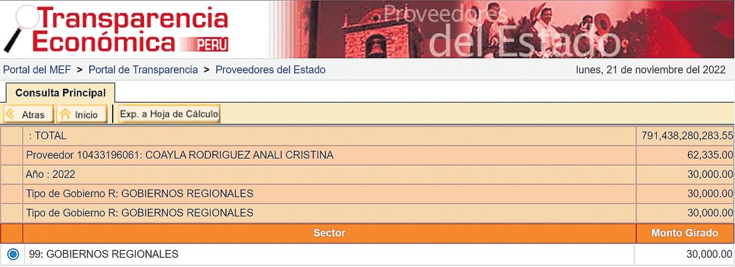 guez, hija del legislador por la región Moquegua, ha cobrado,enloquevadel2022,S/30 mil, según el Portal de TransparenciadelMinisteriodeEconomía.