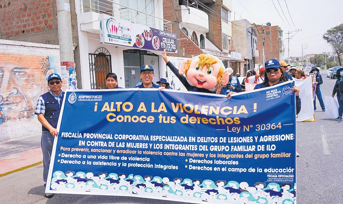 carra, el Dr. William Menéndez Peña, Fiscal Provincial CoordinadordelaFiscalíaProvincial Corporativa Especializada en Delitos de Lesiones y Agresiones en contra de las MujereseIntegrantesdelGrupo Familiar de Ilo”, efectivos dela Policía Nacionaldel Perú, PersonalFiscalyAdministrativo del Ministerio Público, UDAVIT, MIMP, Ministerio de Justiciaentreotros.
