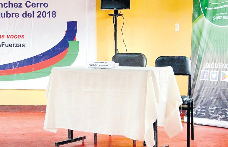 Talycomoseesperaba,laAsociaciónNacionaldePeriodistasde General Sánchez Cerro y el tecnológico de Omate organizaron el debate de los candidatos Gilia Gutiérrez y Jaime Rodríguez, peroesteúltimonosepresentó.Sinembargoyalratolohizoen unaradiodelpueblopararesponderenunaentrevista. Dicen que los dos eran debates,pero terminaron en “walkover”, unonosepresentóaquíylaotratampocoporallá.Paraquienes tuvieron recreo,pero no salieron,Walkover significa que hay un deportista o equipo que se clasificará para la siguiente ronda sin haber llegado siquiera a disputar su partido,en este caso el debateesperado.