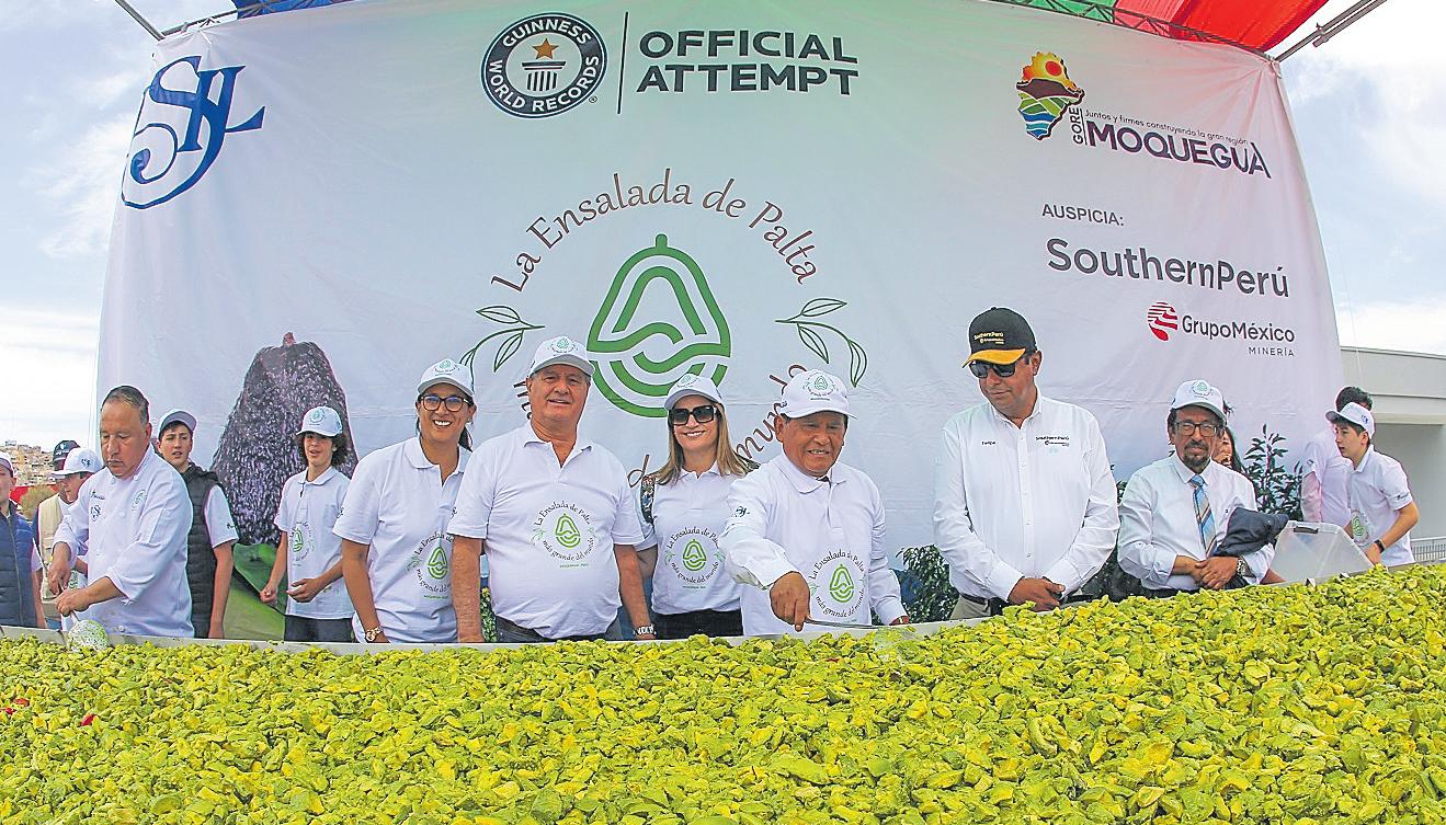Intentar establecer el récord Guinness en Moquegua con laensaladadepaltamásgrande del mundo fue un enorme desafío que superó exitosamente la región Moquegua que,almediodíadelmiércoles 23, logró la acreditación Officially Amazing Guinness World Record.El concurso fue promovidoporelGobiernoRegional de Moquegua y contó con el valioso aporte de Southern Perú,que financió la participaciónendichocertamen.