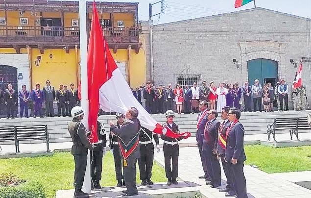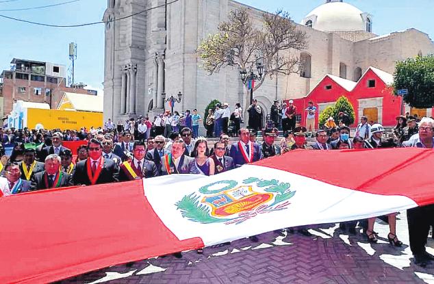 Saludo Protocolar al señor alcaldeAbrahamCárdenasRomero, luego fue la Misa Te Deum, Paseo de la Bandera. Izamiento del Pabellón NacionalyBanderadeMoquegua.