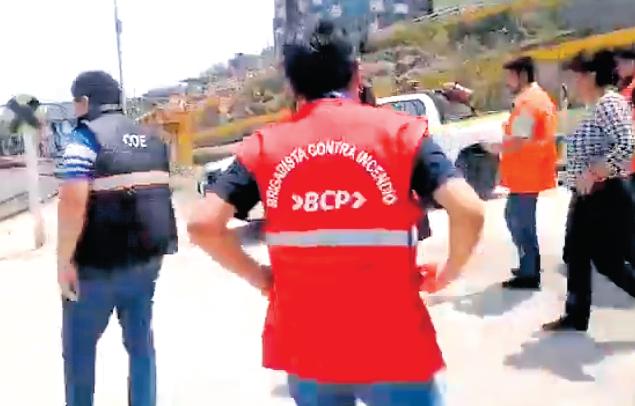 Lostrabajadoresdelaentidadbancaria,demoraron6minutos para evacuar hacia la partealtadondeseencuentra lalíneaférrea,habiendoparticipado26personas.