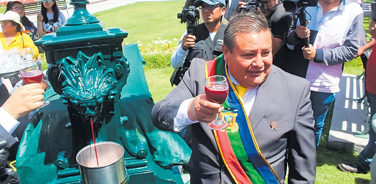 y del pisco en la Plaza de Armas como parte de las actividades por el 481° aniversario deMoquegua. Fue el alcalde provincial