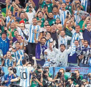 La hinchada argentina explotó de alegría al minuto 64 tras un tiro raso de Messi desde fuera del área que se coló por la esquina inferior izquierda de la portería de Guillermo Ochoa llegando así elprimergoldela'Scaloneta'.