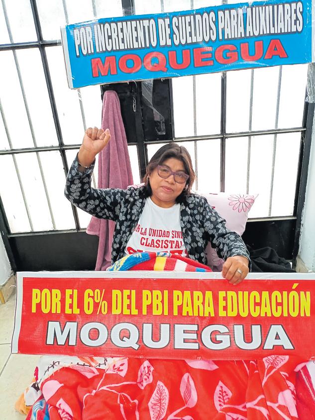 LaProf.MarisolOntiveros,dirigente regional del Sindicato UnitariodeTrabajadoresenla Educación del Perú (SUTEP), dioaconocerquehancumplido el noveno día de huelga de hambre en la capital de la República.