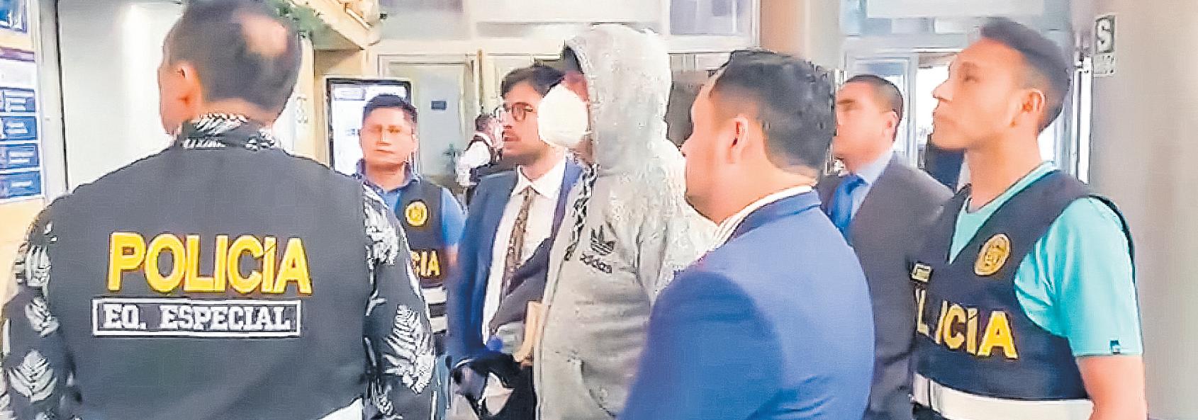 de corrupción vinculado a la compra de biodiésel por parte de la empresa estatal se puso a disposición de las autoridades, alrededor de las 11:20 a. m., portando una polera plomayunamascarillablanca.