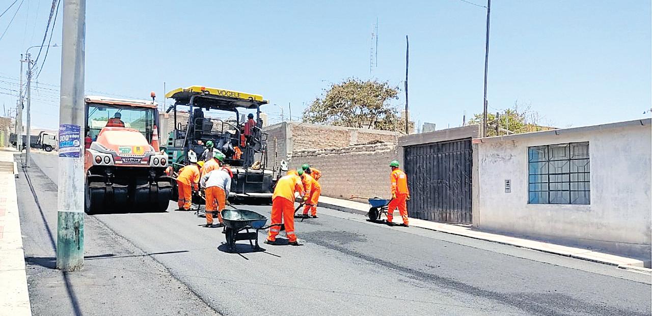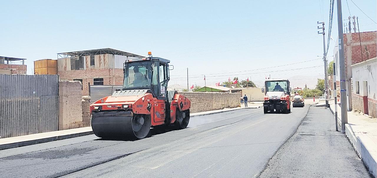 La Municipalidad Provincial Mariscal Nieto continúa con los trabajos de colocación de asfalto en caliente en la obra: “MejoramientodevíasyconstruccióndeveredasenlasJuntas Vecinales, Villa Los Ángeles y los Ángeles”, la cual alcanzóun70%deavancefísico ydemandaráunainversiónascendentea8millones994mil 128soles.