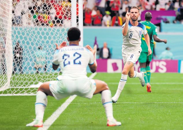 La selección africana en la primera mitad dominó por momentos,peronoeraefectiva para concluir sus jugadas en ofensiva, esto les costaría queenuncontrataqueJordan Henderson marcara el primer gol de los ingleses gracias a un pase filtrado de Jude Bellinghamenelminuto38.