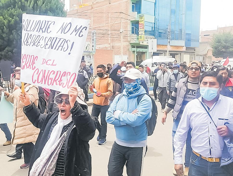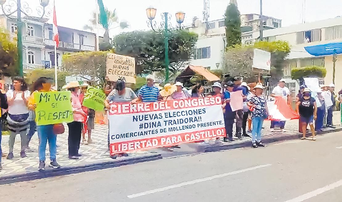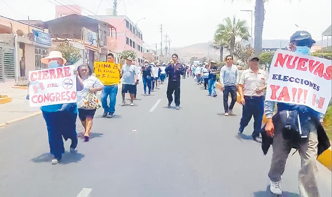 puente Guardiola del distrito de Deán Valdivia desplazándose por varias calles de la localidadconlaconsignadecierre del congreso y adelanto de elecciones.