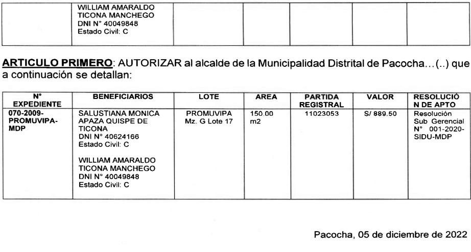 MUNICIPALIDAD PROVINCIAL DE ILO-MOQUEGUA ROSA HUALPA SUCA REGISTRADORA CIVIL D.N.I.29249068 HAGO SABER QUE DON: MARTIN HUAMAN PACCARA DE 52 AÑOS ESTADO CIVIL: SOLTERO, NATURAL JULIACA NACIONALIDAD: PERUANA OCUPACION: OBRERO DOMICILIADO: ILO, 24 DE OCTUBRE MZ. 56 LT. 24 Y DOÑA: VILMA AGUILAR CONDORI DE 46 AÑOS, ESTADO CIVIL: SOLTERA, NATURALDE ACORA–PUNONACIONALIDAD:PERUANAOCUPACION:SUCASA DOMICILIADA:ILO, 24DEOCTUBREMZ.56LT.24 DESEAN CONTRAER MATRIMONIO CIVIL, EN ESTA MUNICIPALIDAD, QUIENES CONOZCAN CAUSAL DEIMPEDIMENTO,PODRANDENUNCIARLOSCONFORMEALEY. LA CEREMONIA SE REALIZARÁ EL DIA VIERNES 23 DE DICIEMBRE A LAS 18:00 HORAS, EN 24 DE OCTUBREMZ.56LT.24 ILO,07DEDICIEMBREDEL2022 EDICTO MATRIMONIAL MUNICIPALIDAD PROVINCIAL DE ILO REGISTRO DEL ESTADO CIVIL